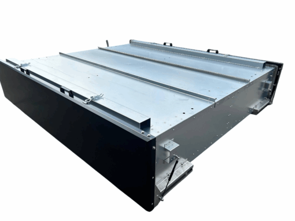 Met een afmeting van 2827 mm breed, 2439 mm diep en 641 mm hoog biedt de kist ruimte voor 24 pallets. Het magnelis staal beschermt tegen roest, slijtage en weersinvloeden, wat zorgt voor een lange levensduur.